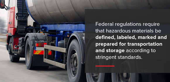 Federal regulations require that hazardous materials be defined, labeled, marked and prepared for transportation and storage according to stringent standards. Companies that fall out of compliance with these regulations will be subject to fines of up to $500,000.