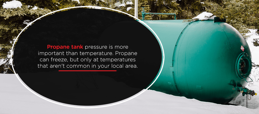Propane tank pressure is more important than temperature. Propane can freeze, but only at temperatures that aren’t common in your local area.